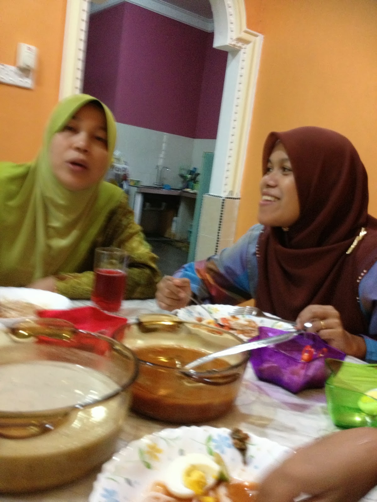 Kami bergosip sambil makan. 2 hero mama duk sibuk puji laksa Penang best...siap bgtau kat kwn2 mama yg mama x pernah pun buat laksa penang...huhuhu. x leh jadi nie, balik mesti tunjuk skill buat laksa penang. kalu x makan, siap....Kelihatan juga angah arif coz dia x nk turun time sampai asrama dia coz x dok org dlm dorm, so anto along & auni jer dulu....isk jenuh lak gie anto dia sorang nnt.